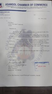 आसनसोल(संवाददाता): आसनसोल शहर में पार्किंग और सड़क पर अवैध कब्जा को लेकर आसनसोल चैंबर आफ कामर्स के सचिव शंभूनाथ झा ने मेयर बिधान उपाध्याय को पत्र लिखा है। उन्होंने मेयर से इन समस्याओं के समाधान का आग्रह किया है। वहीं इसमें चैंबर की ओर से सहयोग का आश्वासन भी दिया है शंभूनाथ झा ने कहा कि मैं अपने पत्र के द्वारा आसनसोल की कुछ मुख्य समस्याओं की ओर आपका ध्यान लें जाना चाहता हूं । 1. बस्तीन बाजार मोड़ पर जो पार्किंग बन रहा था । उसे या तो जल्द से जल्द बनाने की व्यवस्था करें या उसे बन्द कर रोड़ को चौड़ा करने की व्यवस्था करें । 2. हटन रोड की दयनीय अवस्था दिनों दिन खराब होती जा रही है । आने वाले दिनों में पैदल चलना भी मुश्किल हो जायेगा । कृपया कर इस पर ध्यान दें ।3. सारा शहर अतिक्रमण का शिकार होता जा रहा है लेकिन नगर निगम कुछ नहीं कर पा रहा है । जो शहर के लिए अशुभ संकेत है । 4. नगर निगम की आय को बढ़ाने के लिए कड़ाई बहुत ही जरूरी है । हमलोग आपका समर्थन करना चाहतें हैं और साथ ही साथ आपसे मिलकर कुछ अच्छे सलाह भी देना चाहतें हैं ।