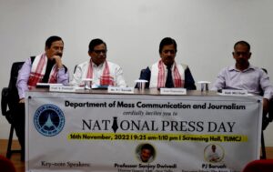 तेजपुर (असम), 16 नवंबर। “स्वतंत्र प्रेस एक जीवंत लोकतंत्र की नींव है। 138 करोड़ भारतीयों के कौशल, ताकत और रचनात्मकता दिखाने के लिए मीडिया का अधिक से अधिक इस्तेमाल किया जा सकता है। मीडिया का काम बेजुबानों को जुबान देना है।” यह विचार भारतीय जन संचार संस्थान (आईआईएमसी), नई दिल्ली के महानिदेशक प्रो. (डॉ.) संजय द्विवेदी ने राष्ट्रीय प्रेस दिवस के अवसर पर तेजपुर विश्वविद्यालय, असम द्वारा आयोजित कार्यक्रम को संबोधित करते हुए व्यक्त किए। इस अवसर पर विश्वविद्यालय के कुलपति प्रो. डी.के. भट्टाचार्य, कुलसचिव प्रो. वीरेन दास, ‘द असम ट्रिब्यून’ के कार्यकारी संपादक पीजे बरुआ और पत्रकारिता एवं जनसंचार विभाग के अध्यक्ष प्रो. अभिजीत वोरा भी उपस्थित रहे।