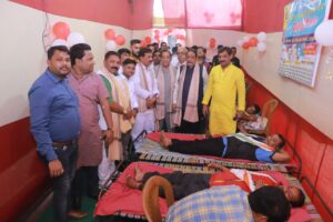 रक्तदान शिविर का उद्घाटन लोकप्रिय पार्षद संतोष पाठक ने किया।कमेटी के अध्यक्ष चंद्रकांत सराफ,चेयरमैन मनोज चांदगोठिया,राज कुमार बोथरा,मीना देवी पुरोहित,महेश शर्मा(पार्षद),अली हुसैन,स्वपन बर्मन,विवेक सोनकर, डॉक्टर अशोक सिंह,डॉक्टर एस के संथोलिया, पप्पू चांडक,घनश्याम मिश्रा,जयप्रकाश सोनकर,भोला प्रसाद सोनकर,हरी सोनी,भोला यादव,शादाब खान,महेंद्र टिवरवाल,दीपक निगानिया,सांवरमल अग्रवाल,संजू बर्मन,काली खटीक,परवेज खान,नागेश। सिंह,नरेश चौधरी,विक्रम सिंह,शिवजी पांडे शिविर का निरीश्रण किया किया।धन्यवाद ज्ञापन राहुल महतो और मुकेश सोनकर ने किया।शिविर मै अनिल लाखोटिया,विजय महतो,आलोक झुनझुनवाला,राजू सिंह,राजेश दास, श्रवण सोनकर,मंजीत सोनकर,विनय बोथरा,प्रदीप तोदी,महेंद्र सोनकर,निशांत सराबगी,हुसैन,सरफराज,दीपक शर्मा,अरुण सोनकर ,संदीप सोनकर,का सक्रिय योगदान रहा।
