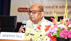 समापन सत्र के मुख्य अतिथि के रूप में विचार व्यक्त करते हुए अच्युतानंद मिश्र ने कहा कि अंग्रेजी भाषा अपने साथ जो संस्कार और जीवन दर्शन लेकर आई थी, उसने हमें यह सोचने पर मजबूर कर दिया कि हमारे पास कुछ नहीं है। इस कारण भारतीय भाषाओं में जो अमूल्य सामग्री है, वह उपेक्षित हो रही है। इस उपेक्षा की वजह से हमें बहुत तकलीफ झेलनी पड़ी है। इसका हमारे संस्कारों और जीवन मूल्यों पर भी असर पड़ा है।
