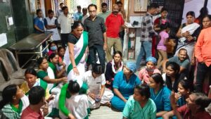 रानीगंज। रानीगंज के सियारसोल क्षेत्र स्थित आनंदलोक अस्पताल के करीब 200 स्वास्थ्य कर्मी तीन माह से वेतन नहीं मिलने पर अस्पताल परिसर का मुख्य गेट बंद कर विरोध प्रदर्शन में शामिल हो गये।उन्होंने दावा किया कि अस्पताल के अधिकारी लंबे समय से वेतन देने में आनाकानी कर रहे हैं। उन्होंने यह भी दावा किया कि वेतन मांगने पर उन्हें कई बार बर्खास्तगी की धमकी दी गई। उनका दावा है कि लंबे समय से वेतन न मिलने के कारण उन पर कर्ज चढ़ गया है जिसके कारण उन्हें काफी नुकसान उठाना पड़ रहा है, इसलिए आखिरकार जब उनको कोई समाधान नहीं मिला तो वह इस गेट को बंद कर विरोध करने को मजबूर हैं।