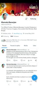 कोलकाता, 22 अप्रैल । पश्चिम बंगाल की मुख्यमंत्री ममता बनर्जी का ट्विटर का ब्लू टिक हटा दिया गया है। इसे लेकर सत्तारूढ़ पार्टी तृणमूल कांग्रेस ने मोर्चा खोल दिया है। शुक्रवार सुबह सुबह यह पता चला कि मुख्यमंत्री के ट्विटर अकाउंट पर मौजूद ब्लू टिक को हटा दिया गया है। इसके बाद यह भी जानकारी मिली कि ना केवल मुख्यमंत्री का बल्कि उनके भतीजे और डायमंड हार्बर से सांसद अभिषेक बनर्जी का भी ब्लू टिक ट्विटर पर हट गया है। इसे लेकर भाजपा पर साजिश रचने के आरोप लग रहे हैं। सीएम के ट्वीट को लेकर सोशल मीडिया पर तृणमूल कार्यकर्ता लिख रहे हैं कि केंद्र की सरकार और भारतीय जनता पार्टी ने मिलकर मुख्यमंत्री और उनके भतीजे का ट्विटर ब्लूटिक हटवाया है। हालांकि तृणमूल कांग्रेस ने अभी तक इस पर आधिकारिक प्रतिक्रिया नहीं दी है। वहीं दूसरी ओर प्रदेश भाजपा अध्यक्ष सुकांत मजूमदार का ट्विटर का ब्लूटिक बरकरार है। बहरहाल इस बारे में ट्विटर की ओर से भी कोई जानकारी नहीं मिली है। सूत्रों ने बताया है कि ट्विटर पर सरकारी या संवैधानिक पदों पर बैठे हुए लोगों के ट्विटर अकाउंट को ग्रेय टिक दिया जाता है। हो सकता है कि मुख्यमंत्री को ग्रेय टिक देने के लिए उनका ब्लू टिक हटाया गया है। बहरहाल इस बारे में फिलहाल स्थिति स्पष्ट नहीं है।