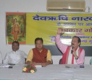 गोष्ठी का प्रारंभ करते हुए डॉ. विशेष गुप्ता द्वारा विषय प्रस्तुति की गई इस अवसर पर उन्होंने कहा कि सृष्टि के प्रथम संवादवाहक के रूप में देवऋषि नारद जी का योगदान भुलाया नहीं जा सकता वे भारतीय संस्कृति के ध्वजवाहक हैं हम नारद जी का पत्रकार रूप देखें कि देवता, असुर, साधारण व्यक्ति तक जहां आवश्यकता होती थी वहां नारदजी उपस्थित होते थे वह शत्रु तथा मित्र दोनों में ही लोकप्रिय थे आनंद, भक्ति, विनम्रता, ज्ञान कौशल के कारण उन्हें देवऋषि की पदवी प्राप्त थी।
