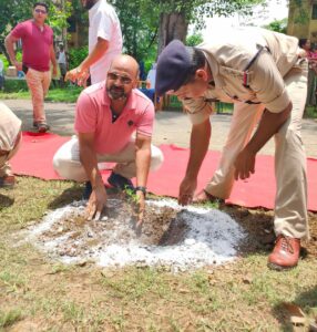 आईजी कालोनी में पौधरोपण के दौरान महोगनी, बेल, निम के साथ फलदार 250 पौधा लगाया गया ।
