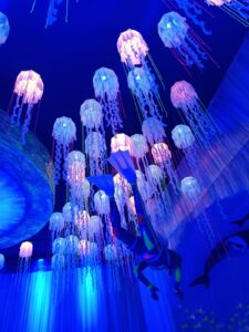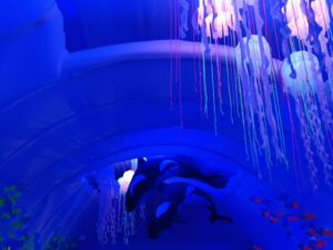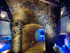 कोलकाता। मछुआ बाजार सार्वजनिक दुर्गा पुजा समिति द्वारा इस बार दुर्गा पूजा पंडाल को समुद्र तल की गहराई का प्रतिरूप दिया है, जो कि बच्चों को एक अलग रोमांच देगा। दरअसल इस पंडाल को एक बड़ा एक्यूरईयम का रूप दिया गया है। इसमें दर्शाया गया है कि समुद्र की गहराइयों में भी एक जीवन बसता है। जिसमें रंग-बिरंगे मछलियों के साथ ही अन्य तरह के जीव-जंतु भी निवास करते हैं।