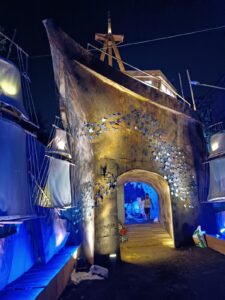 मछुआ बाजार सार्वजनिक दुर्गा पूजा समिति के सदस्य मनोज माली,संजय गुप्ता, कमल सिंह,मनोज सिंह ने बताया कि इस दुर्गा पूजा समिति की यह खासियत रही है कि यह प्रत्येक वर्ष बच्चों के लिए एक से बढ़कर एक थीम को लेकर पंडाल का निर्माण करवाती है। इस बार के पंडाल का थीम है समुद्र की गहराई। इसमें समुद्र में डूबे चर्चित जहाज को भी खूबसूरती के साथ दिखाया गया। वास्तव में यह पंडाल बच्चों के लिए एक अलग तरह का अनुभव करवाएगा। बच्चे देखते ही रोमांचित हो उठेंगे।