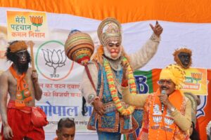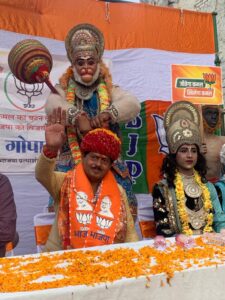 रामजी, जानकी जी, हनुमान जी का रूप धरे अनूठे अंदाज में किया मोदी और गोपाल शर्मा समर्थकों ने जनसम्पर्क
