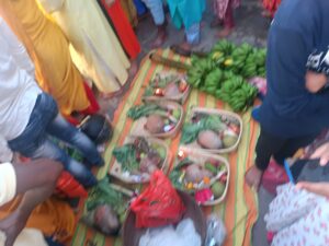 छठ पूजा के लिए लिए महानगर कोलकाता समेत हावड़ा, हुगली, उत्तर और दक्षिण 24 परगना समेत राज्य भर के सभी गंगा घाटों पर लाखों की संख्या में छठ व्रतियों ने सूर्य को अर्घ्य दिया है। इस दिन घाटों पर गजब की चहल-पहल थी। रंग बिरंगी साड़ियों में नाक से लेकर सिर के मध्य हिस्से तक सिंदूर लगाई सुहागन महिलाएं शूप में केला, सेव, नारियल, नारंगी, नाशपाती आदि सजाकर नदी, तालाबों, झरना, आदि के पानी में घुसकर सूर्य को अर्घ्य दी हैं।