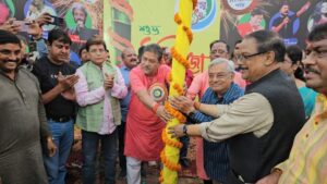दुर्गापुर। औद्योगिक शहर दुर्गापुर के चित्रालय मैदान में 3 दिसंबर से 17 दिसंबर तक दुर्गापुर उत्सव शुरू की जाएगी। दुर्गापुर उत्सव के आयोजन को लेकर रविवार को पूरी विधि-विधान के साथ खूंटी पूजा कार्यक्रम आयोजित की गई। मौके पर राज्य के श्रम एवं कानून मंत्री मलय घटक, ग्रामीण एवं उन्नयन विकास मंत्री प्रदीप मजूमदार, पांडवेश्वर विधानसभा केंद्र के विधायक नरेंद्र नाथ चक्रवती सहित आयोजन कमेटी के कई प्रतिनिधि मौजूद थे। इस दौरान उपस्थित अतिथियों के हाथों मेला का नया वेबसाइट की शुरुआत की गई। इस दौरान मंत्री मलय घटक ने बताया कि दुर्गापुर के इतिहास में पहली बार दुर्गापुर उत्सव का आयोजन किया जा रहा है। इस मेला में वाणिज्यिक, कृषि, खेलकूद, पुस्तक, साहित्यिक के अलावा सांस्कृतिक मंच का आयोजन किया जाएगा, जहां राज्य के नामी नायकों के साथ-साथ मुंबई के मशहूर गायक मौजूद रहेंगे। मेले का मुख्य उद्देश्व दुर्गापुर के अस्तित्व एवं इतिहास को उजागर कर उत्सव में जनता को एकजुट कर उन्हें मनोरंजन प्रदान करना है। राज्य की मुख्यमंत्री ममता बनर्जी हर जिले में उसके उत्सव का आयोजन को लेकर जोर देती रही है।वही मेले के आयोजन को लेकर दुर्गापुर शहर वासियों में काफी उत्साह है।