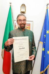 इटली के कंसोल जनरल एलेसेंड्रो डी मासी ने अपने भाषण में इटली के राष्ट्रपति मैटरेल्ला के शब्दों को पढ़ा। कबीर बेदी… पिछले 30 सालों से असाधारण मानवीय और कलात्मक साझेदारी से इटली से जुड़े हुए हैं। सम्मान का स्क्रॉल पर राष्ट्रपति मैटरेल्ला ने साइन किया था और प्रधानमंत्री जियोर्जिया मेलोनी ने काउंटर साइन किया था।
