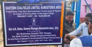 ईसीएल के कुनुस्तोड़िया क्षेत्र की सीएसआर योजना के तहत स्थापित डीप बोरवेल, सोलर पंप व पेय जलापूर्ति हेतु पाइपलाइन का उद्घाटन