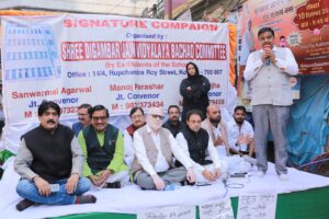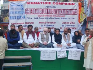 कोलकाताः कोलकाता की हृदय स्थली बड़ाबाजार जहां दिन भर करोडों का व्यापार होता है। इसके गलियों में अनगिनत कटके, गद्दी व नामा गिरामी दुकानें हैं यहां दिन भर लोगों का रेला लगा रहता है। वहां इस क्षेत्र में कई ऐतिसाहिस स्कूल भी हैं जहां से समाज को गौरवान्वित करने वाले कई छात्र तैयार हुए हैं। आरोप है कि बड़ाबाजार के सत्यनारायण पार्क स्थित शिक्षा के मंदिर श्री दिगंबर जैन विद्यालय का व्यवसायिक्करण किए जाने की साजिश रची जा रही है। विगत कुछ दिनों पहले स्कूल के प्रबंधक ने नोटिस जारी कर 1 जनवरी को इसका स्थानांतरण 30 बनारसी घोष स्ट्रीट में किए जाने का फैसला लिया है।स्कूल प्रबंधन का कहना है कि स्कूल के मरम्मत कार्य में ढाई वर्ष का समय लगेगा। स्कूल प्रबंधन के इस फैसले के खिलाफ स्कूल के पूर्व छात्रों व सामाजिक व राजनीतिक लोगों श्री दिगंबर जैन विद्यालय बचाओं कमेटी के बैनर तले इसके विऱोध में धरना प्रदर्शन का आयोजन किया इसके साथ ही हस्ताक्षर आंदोनल भी चलाया है।