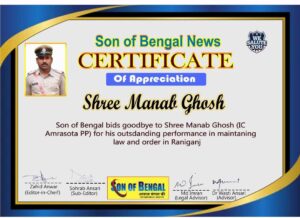 सन ऑफ बंगाल न्यूज की ओर से आमरासोता पुलिस फांड़ी के प्रभारी मानव घोष को दी गई विदाई