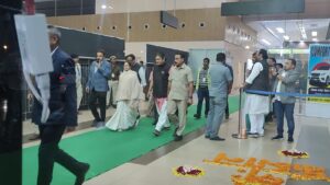 दुर्गापुर। राज्य की मुख्यमंत्री ममता बनर्जी अपने प्रशासनिक मीटिंग के लिए दो दिवसीय बीरभूम जिले के दौरे को लेकर शनिवार रात करीब आठ बजे मुख्यमंत्री ममता बनर्जी पश्चिम बर्दवान जिले के दुर्गापुर अंडाल के काजी नजरूल इस्लाम एयरपोर्ट पर पहुंची. जहां उनके स्वागत के लिए राज्य के कानून एवं श्रम मंत्री मलय घटक,पांडवेश्वर के विधायक सह जिला सभापति नरेंद्र चक्रवर्ती,आसनसोल दुर्गापुर के पुलिस कमीशन सुनील कुमार चौधरी प्रदेश टीएमसी सचिव वी.शिवदासन दासू समेत समर्थक मौजूद है। वहीं एयरपोर्ट परिसर में सुरक्षा के भी पुख्ता इंतजाम किए गए थे जगह-जगह पर पुलिस की तैनाती की गई थी। इस दौरान मुख्यमंत्री ममता बनर्जी को देखने के लिए हवाई अड्डे के बाहर सैकड़ों की संख्या मे तृणमूल कांग्रेस कार्यकर्ता और समर्थक पार्टी के झंडे के साथ मौजूद थे मुख्यमंत्री ममता बनर्जी को देखते ही उनके समर्थकों में उत्साह भर गया और उन्होंने जमकर नारेबाजी की।मुख्यमंत्री ने कार में बैठने से पहले पार्टी कार्यकर्ताओं और समर्थकों का हाथ हिलाकर अभिवादन किया. इसके बाद वह सड़क मार्ग से बीरभूम के लिए रवाना हो गईं। बताया जा रहा है कि मुख्यमंत्री ममता बनर्जी रविवार को बीरभूम जिले के मुख्यालय सिउड़ी का दौरा करेंगी. सिउरी के चांदमारी मैदान में सरकारी कार्यक्रम में शामिल होंगी.देउचा पंचमी को दुनिया की दूसरी सबसे बड़ी कोयला खदान के रूप में जाना जाता है। कोयला खनन परियोजनाओं के लिए भूमि मालिकों को सरकारी नियुक्ति पत्र सौंपेंगी ममता बनर्जी इसके अलावा वह कई सरकारी परियोजनाओं का उद्घाटन और शिलान्यास करेंगे. कार्यक्रम के अंत में मुख्यमंत्री सिउड़ी से हवाई मार्ग से कोलकाता के लिए रवाना होंगी।