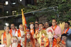 कोलकाता/हुगली : महाशिवरात्रि के पावन अवसर पर ‘सांस्कृतिक समारोह समिति हिंदमोटर’ द्वारा भव्य शिव की बारात यात्रा का आयोजन किया गया। इस यात्रा में हुगली जिला हिंद मोटर क्षेत्र के लगभग 1000 शिव भक्त शामिल हुए और यात्रा को सफल बनाया। यात्रा हिंद मोटर के विभिन्न मार्गों से होते हुए शंकर भवन में प्रवेश किया। इस यात्रा में शिव जी का रूप धरे व्यक्ति, नारद, नंदी, भूत, शिव के गण एवं डमरू, झाझ, बैंड एवं तासा के साथ भी शिव के आराधक उपस्थित रहे। शिवजी की बारात की अगुआई उत्तरपाड़ा नगरपालिका के अध्यक्ष श्री दिलीप यादव ने किया, मुख्य अतिथि के रूप में 7 न. वार्ड के पार्षद श्री अजय सिंह ‘मार्शल’ उपस्थित रहे। कार्यक्रम के संयोजन में विक्की काबरा, संदीप शर्मा, मोहन रजक, नरेंद्र नरेडी, अरविंद मिश्र रहे। उक्त कार्यक्रम में अतिथियों के रूप में दयानंद चौधरी, कैलाश लोहिया, अशोक जैन, राजेश गोयल, सत्यनारायण केडिया, राज कुमार कड़ेल आदि उपस्थित रहे। कार्यक्रम का कुशल संचालन प्रभु दयाल बरबाड़िया ने किया। धन्यवाद ज्ञापन करते हुए श्री शशिकांत नरसारिया नें ‘भद्रकाली श्री शंकर विद्यालय के छात्र जिन्होंने बैंड बजा कर बारात को मंत्रमुग्ध किया उन्हें एवं विद्यालय के प्रधानाध्यापक श्री विश्वजीत साव को हार्दिक धन्यवाद किया।