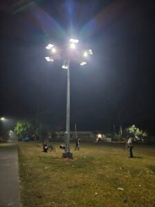तीन सोलर हाई मास्ट लाइटिंग सिस्टम से प्रति वर्ष 2.79 टन CO2 की कमी के साथ 3285 KWh ऊर्जा की बचत होती है।