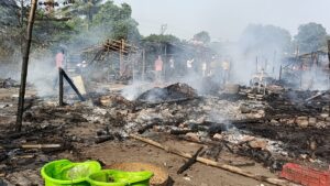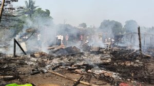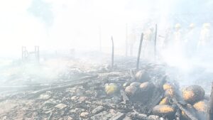 रानीगंज के कुमार बाजार स्थित सब्जी मार्केट में भयानक आग से लाखों का नुकसान