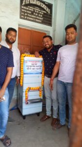 रानीगंज/मारवाड़ी युवा मंच की तरफ से ठंडा पानी पीने की मशीन जेके नगर हाई स्कूल में इंस्टॉल की गई। मुख्य अतिथि समाजसेवी सुमित कयाल ने बतलाया कि जेके नगर स्कूल के प्रबंधन की तरफ से हम लोगों से निवेदन किया गया था कि गर्मियों के मौसम में विद्यार्थियों की सुविधा के लिए ठंडा पीने का पानी उपलब्ध होना चाहिए मारवाड़ी युवा मंच की तरफ से हम लोगों ने एयर कंडीशन ठंडा पीने के पानी की मशीन स्कूल में आज लगा दी है विद्यार्थियों एवं शिक्षक शिक्षिकाओं में खुशी की लहर है। स्कूल के टीचर इंचार्ज शमीम अख्तर ने युवा मंच के सदस्यों के प्रति आभार प्रकट किया। समाजसेवी शंकर अग्रवाल ने बताया कि मारवाड़ी युवा मंच के द्वारा निरंतर सेवा के काम किए जाते हैं पीने के पानी की कहीं भी असुविधा हो एवं हमें जानकारी दी जाए तो हम लोग निरंतर वहां पानी उपलब्ध करवाते हैं इसके अलावा विभिन्न तरह की सामाजिक गतिविधियों में संस्था के सदस्य निरंतर प्रयासरत रहते हैं। इस मौके पर आसनसोल इंजीनियरिंग कॉलेज के इंजीनियर अंकित अग्रवाल, राजेश जिंदल, श्याम जालान, अमित बगड़िया, अध्यक्ष प्रतीक मोर मुख्य रूप से उपस्थित थे।