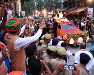 इस दौरान जहां पीएम मोदी ने हाथ हिलाकर तो वहीं सीएम योगी ने हाथ जोड़कर गोपाल शर्मा का अभिवादन स्वीकार किया। प्रधानमंत्री और मुख्यमंत्री के साथ उत्तर प्रदेश के भाजपा अध्यक्ष भूपेंद्र चौधरी भी रथ पर सवार थे।