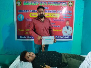 आसनसोल। रक्त की कमी को देखते हुए आसनसोल की सामाजिक संस्था महादेव सेवा फाउंडेशन और शिव मंदिर भगत पाड़ा रानीगंज के संयुक्त तत्वावधान में रविवार को रानीगंज भगत पाड़ा मे रक्तदान शिविर आयोजित किया गया। महादेव सेवा फाउंडेशन के द्वारा इस वर्ष का पांचवा रक्तदान शिविर है। शिविर में संस्था के सदस्यों के आलावा स्थानीय लोगों ने भी बढ़चढ़कर हिस्सा लिया। शिविर में कुल 30 यूनिट रक्त संग्रह किया गया जिसे आसनसोल जिला अस्पताल के ब्लड बैंक की टीम ने सहयोग कर ब्लड बैंक में जमा कराया। संस्था द्वारा सभी रक्तदाताओं को सर्टिफिकेट देकर सम्मानित किया गया। इस दौरान संस्था के सलाहकार शिक्षक सुदीप पाण्डेय ने बताया कि हम देश के प्रत्येक नागरिक से अपील करते हैं सभी सक्षम महिला पुरुष को रक्तदान जरुर करना चाहिए। रक्तदान महान दान है। इसके लिए महादेव सेवा फाउंडेशन हमेशा जरुरतमंद के लिए तत्पर है। कार्यक्रम को सफल बनाने में महादेव सेवा फाउंडेशन के संस्थापक शिवम भगत, सलाहकार सुदीप पाण्डेय, सचिव अभिराज शर्मा, संदीप भगत, अमन प्रसाद, विक्रम भगत, सोनु भगत, छोटु भगत, लाल चौधरी सन्तोष चौधरी, दीपक भगत, अविनाश भगत आदि का विशेष सहयोग रहा।