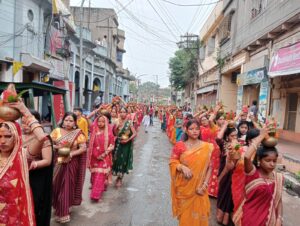 रानीगंज/जय माता दी स्पोर्टिंग क्लब की तरफ से श्री श्री 1008 शिव प्राण प्रतिष्ठा महायज्ञ के पहले दिन 500 से ज्यादा महिलाओं ने कलश यात्रा निकाली। इस शोभा यात्रा में भगवान शिव की कई आकर्षक झांकियां गाजे बाजे के साथ पूरे शहर की परिक्रमा की गई। जय माता दी स्पोर्टिंग क्लब के अध्यक्ष जयप्रकाश साव ने कहा कि रानीगंज में श्री श्री 1008 शिव प्राण प्रतिष्ठा महायज्ञ काफी विशाल रूप से मनाया जा रहा है 9 जुलाई तक कार्यक्रम का आयोजन होगा प्रतिदिन भारत के विख्यात कथा वाचक इस कार्यक्रम में उपस्थित होंगे। महासचिव विकास साव ने कहा कि प्रथम दिन कलश यात्रा के साथ देर शाम को वृंदावन से देवी दीप्ति जी कथा वाचिका भक्तों को संबोधित किया। इस कार्यक्रम में बनारस काशी से आचार्य लव कुश शास्त्री जी एवं वृंदावन से स्वामी श्री राज दिक्षित मुख्य रूप से उपस्थित होंगे। कमेटी की तरफ से प्रदीप साव ने कहा कि इस्ट कॉलेज पाडा में रामलीला का भव्य आयोजन ऐतिहासिक होगा पूरा शहर का वातावरण भक्तिमय बन जाएगा। हजारों की संख्या में भक्तगण प्रतिदिन उपस्थित रहेंगे। प्रचानग पूजन मंडप प्रवेश के साथ कार्यक्रम की शुरुआत भारत के विख्यात वृंदावन की देवी दीप्ति श्रीजी ने कथा के माध्यम से की। पूरे कार्यक्रम में पुजारी कुमार प्रवीण पांडे की भूमिका अहम है। संयुक्त सचिव प्रदीप साव ने कहा कि इस तरह का कार्यक्रम ऐतिहासिक कहलाएगा। पूरे पश्चिम बर्दवान जिला का वातावरण भक्तिमय बन जाएगा।