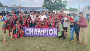 आसनसोल। प्रगति आसनसोल द्वारा बर्नपुर स्टेडियम में आयोजित विवेकानंद गोल्ड कप फुटबॉल टूर्नामेंट 2024 के फाइनल मैच में बर्नपुर यूनाइटेड क्लब ने पेनल्टी शूटआउट में डीएसए आसनसोल ईस्टर्न रेलवे को हराया। पहले हाफ में ईस्टर्न रेलवे को 1 गोल कि बड़त हासिल हुआ । लेकिन दुसरे हाफ मैं बर्नपुर यूनाइटेड क्लब गोल बराबर करके मैच मैं अपना पकड़ जमा लिया । जिस कारण मैच का फ़ैसला पेनल्टी शूटआउट में हुआ,मैच का परिणाम बर्नपुर यूनाइटेड क्लब 1 (5) – (3) 1 डीएसए आसनसोल ईस्टर्न रेलवे। मैन ऑफ द मैच: संजीब बाऊरी ओर मैन ऑफ द टूर्नामेंट: सेख इंजमामुल हक चुने गये । मैच का परिचालन आसनसोल रेफरी एसोसिएशन द्वारा किया गया था ।