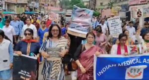 कोलकाता मे ट्रेनी महिला डॉक्टर से रेप, फिर हत्या के विरोध मे रानीगंज में डॉक्टरों ने निकाली विरोध रैली