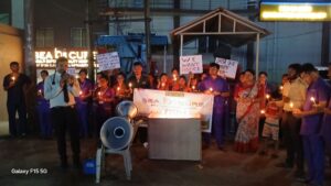 कोलकाता के आरजीकर अस्पताल की घटना के खिलाफ हरिपुर स्तिथ सी बी क्योर नामक निजी अस्पताल के स्वास्थ कर्मचारी ने मोमबत्ती जला मौन विरोध जताया