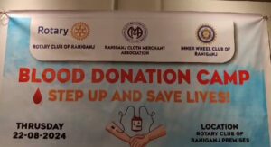 स्लोगन-रानीगंज रोटरी क्लब,इनर व्हील क्लब और क्लॉथ मर्चेंट्स एसोसिएशन के संयुक्त तत्वावधान मे रक्तदान शिविर का आयोजन