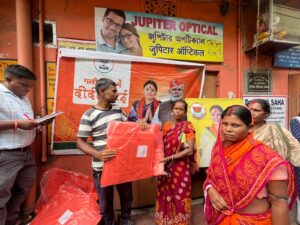 आसनसोल।आसनसोल शिल्पांचल में लगातार तीन दिनों तक हुई भारी बारिश की वजह से क्षेत्र कई लोगों का आशियाना ही उजाड़ दिया, कई लोग बेघर हो गए, कई लोगों के घर से पानी टपकना शुरू हो गया जिस कारण आम लोगों का जीवन यापन में बड़ी समस्याएं आ रही थी और इन सभी लोगों के लिए वरदान बनकर सामने आई आसनसोल दक्षिण विधानसभा की विधायिका अग्निमित्रा पाल। विधायक अग्निमित्रा पाल के दिशा-निर्देशा पर भाजपा कार्यकर्ताओं के सहयोग से आसनसोल दक्षिण विधानसभा क्षेत्र के विभिन्न इलाके धर्मपुर, नरसिंहबांध, रामबांध, बल्लवपुर, तिराट, कालीपहाड़ी डांगमशिला, शांतिनगर, एगारा , डामरा आदि जैसे जगहों में लोगों को बारिश से बचने के लिए 600 से अधिक तिरपाल वितरण किया गया। इस दौरान पार्थ साथी दास, संगीता नोनिया, रामानंद शा, संदीप, संजय यादव, अपूर्बा, काकुली घोष,दिविया शर्मा, संध्या परमाणिक, दीपा घोष, अनमोल सिंह, भरत ध्रुव, रूपा वर्मा सहित भाजपा के सभी मंडल अध्यक्ष और जिला नेतृत्व मौजूद रहे। इस विषय पर भाजपा माईनरेटी मोर्चा के अनमोल सिंह ने बताया कि विधायक अग्निमित्रा पाल के आदेश के अनुसार आसनसोल दक्षिणी विधानसभा के कई मंडलों में भाजपा कार्यकर्ता जा जाकर जायजा ले रहे हैं। जो लोग इस पानी का कहर झेल रहे हैं। उनके पास थोड़ा सा छत ढकने का प्रयास हमारी विधायिका अग्निमित्र पाल के सहयोग से किया जा रहा है। आने वाले दिनों में भी यह जारी रहेगा।
