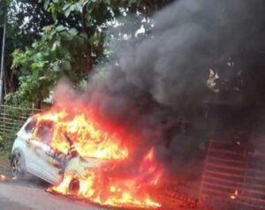 आसनसोल के रामसर मैदान के पास बुधवार को एक चलती कार में अचानक आग लग गई और देखते ही देखते कार धू-धू कर जल खाक हो गई। बताया जाता है कि कुछ लोग बाराबनी से एक डिलीवरी पेशेंट को आसनसोल जिला अस्पताल ले जाया जा रहा था। ठीक रामसर मैदान के पास कार में आग लग गई, जिससे आस पास इलाके मे अफरा-तफरी का माहौल बन गया। स्थानीय लोगों ने बताया कि आग इतनी तेजी से फैली कि कार पूरी तरह से जल गई। हालांकि, पेशेंट और ड्राइवर की जान बच गई, लेकिन कार को नहीं बचाया जा सका। आग लगने का कारण अभी तक स्पष्ट नहीं हो पाया है, लेकिन संभावना जताई जा रही है कि शॉर्ट सर्किट की वजह से यह हादसा हुआ होगा। आग लगते ही इलाके में हड़कंप मच गया। लोग इधर-उधर भागने लगे और कई लोग अपने मोबाइल पर इस घटना का वीडियो बनाने लगे। पुलिस और दमकल विभाग को सूचना दी गई। लेकिन आग इतनी तेज थी कि कार पूरी तरह से जलकर खाक हो गई।