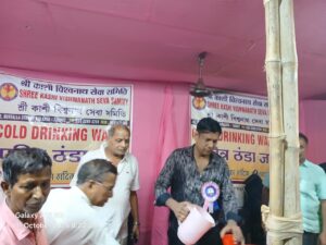 कोलकाता १२ अक्टूबर, शनिवार दुर्गा पूजा के उपलक्ष में कोलकाता के मध्य मोहम्मद अली पार्क में आयोजित दुर्गोत्सव में श्री काशी विश्वनाथ सेवा समिति ने ६ दिवसीय निःशुल्क जल वितरण शिविर का आयोजन किया। यह शिविर ७ अक्टूबर से लगातार दिन – रात १२ अक्टूबर तक चलाया गया। ज्ञात रहे की हर वर्ष समूचे बंगाल में दुर्गा पूजा बड़ी धूम धाम से मनाया जाता है, इसी उपलक्ष में श्री काशी विश्वनाथ सेवा समिति प्रत्येक वर्ष भिन्न भिन्न स्थानों में निःशुल्क जल वितरण शिविर का आयोजन करती है जिसमें लाखों की संख्या में श्रद्धालू एवं जरूरतमंद अपनी प्यास बुझाते हैं। इस वर्ष भी समिति के अध्यक्ष एवं विधायक विवेक गुप्ता, एवं प्रधान सचिव बिमल दीवान के मार्गदर्शन में यह शिविर ७ अक्टूबर से १२ अक्टूबर तक आयोजित हुआ। जल ही जीवन है मंत्र को मानते हुए उप सचिव पवन बंसल के नेतृत्व में उप सचिव सुभाष सावलदावाला, आदित्य विक्रम तुलस्यान, संजय अग्रवाल ( नीम का थाना ), प्रकाश सांगनेरिया, सचिन अग्रवाल, बिनोद अग्रवाल, अनु मिश्र,अनिल डालमिया, पवन कंदोई, अरुण झुनझुनवाला आदि ने अपनी उपस्थिति से पूर्ण योगदान दिया। यह सारी जानकारी संस्था के उप सचिव पवन बंसल ने दी।