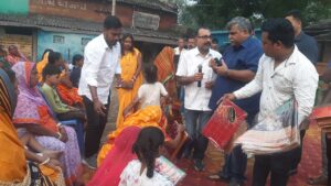 रानीगंज। छठ पूजा के शुभ अवसर पर जेके की सामाजिक संस्था पहल की ओर मंगलवार को जेके नगर पोस्ट ऑफिस के निकट 350 छठ व्रतियों के बीच साड़ी वितरण किया गया। कार्यक्रम में मुख्य अतिथि के रूप में भाजपा नेता जितेंद्र तिवारी उपस्थित हुए। उन्होंने अपने हाथों से महिलाओं को साड़ी वितरित किया। इसके अलावे अभय उपाध्याय, पार्षद गौरव गुप्ता, अविनाश चतुर्वेदी, चुन्नू तिवारी आदि उपस्थित थे। इस दौरान जितेंद्र तिवारी ने अपने वक्तव्य में कहा कि प्रत्येक वर्ष हम लोग छठ वृत्तियों के बीच साड़ी वितरित करते हैं इस दौरान हम लोग छठी मैया से प्रार्थना करते हैं कि हम लोगों को इतनी क्षमता बनाए रखें कि हम लोग इसी तरह से सेवा करते रहें। इस दौरान उन्होंने तृणमूल द्वारा भाजपा कर्मियों पर हमले को लेकर कहा कि हम लोग जब से भाजपा में आए हैं तब से हमारे करीबियों को नौकरी से निकाल दिया गया हमारा पहल संस्था के कार्यालय पर हमला किया गया तथा हमारा नाम लिखा हुआ बोर्ड को भी तोड़ दिया गया उन्होंने कहा कि यह लोग हम लोगों पर हमला भी कर सकते हैं परंतु फिर भी जब तक जान रहेगी तब तक हम लोग लोगों की सेवा करते रहेंगे क्योंकि यहां के लोगों के दिल में हमारा प्यार बसता है।