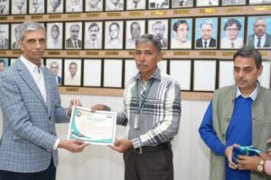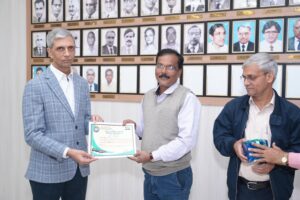 चित्तरंजन;26.11.2024:चित्तरंजन रेलइंजन कारखाना (चिरेका) के डिजाइन और विकास केंद्र में सेवारत श्री अभिजीत चक्रवर्ती, मुख्य डिजाइन इंजीनियर (सीडीई) को बेहतर, समर्पित – कार्यकुशल सेवा के लिए श्री हितेंद्र मल्होत्रा, महाप्रबंधक ने आज 26.11.2024 को विशेष रूप से योग्यता प्रमाण पत्र और नकद पुरस्कार से सम्मानित किया और बधाई दी ।