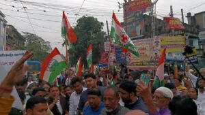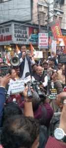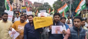 कोलकाता। प: ब प्रदेश कांग्रेस द्वारा प्रेसीडेंसी कॉलेज के पास से रैली निकाली गई सभापति सुभांकर सरकार के नेतृत्व मै। सैकड़ों कार्यकर्ताओं द्वारा हाथो मै अमित शाह का पोस्टर लेकर उसके खिलाफ नारेबाजी की गई और इस्तीफा मांगा गया।सरकार ने कहा बाबा साहेब अंबेडकर जी का अपमान और नेता विपक्ष श्री राहुल गांधी जी पर फर्जी एफआईआर के खिलाफ कांग्रेस के बब्बर शेरों का इंकलाब अमित शाह के इस्तीफा देने तक जारी रहेगा।कार्यकर्ताओं द्वारा कॉलेज स्ट्रीट मोड़ पर 30 मिनट तक रोड अवरोध किया गया और अमित शाह का पुतला फूंका गया।पुलिस द्वारा शीर्ष नेतृत्व से बात करने पर अवरोध हटाया गया। मोके पर अमिताभ चक्रवर्ती,माया घोष, रासु दत्ता,आशुतोष चटर्जी,मानस सरकार उपस्थित थे।रैली मै प्रदीप प्रसाद,मोहन पांडे,पंकज सोनकर,अजमल खान,सुमन पाल,अकिब जहूर,मो:हुसैन,दीपक सिंह,प्रमोद पांडे,रजनी सिंह,विकाश यादव,मो:जुनैद,इंतिकाव अख्तर व अन्य कार्यकर्तागण उपस्थित थे।