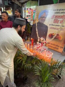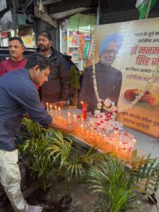 कोलकाता ।पूर्व प्रधानमंत्री डॉ. मनमोहन सिंह जी के निधन पर प:ब प्रदेश युवा कांग्रेस के सचिव पंकज सोनकर के नेतृत्व में वार्ड 23 ओर 42 के संगम स्थल पर पूर्व प्रधानमंत्री डॉ. मनमोहन सिंह जी के चेलचित्र पर पुष्प अर्पित कर और मोमबत्ती जलाकर एक मिनट का मौन धारण कर श्रद्धांजलि दी गई।पंकज सोनकर ने कहा उनकी दूरदर्शिता, दक्षता एवं आर्थिक नीतियों ने देश की प्रगति को नई दिशा दी, आर्थिक सशक्तिकरण में अद्वितीय योगदान दिया एवं विश्व पटल पर भारत को आर्थिक शक्ति के रूप में स्थापित किया।