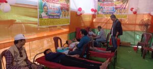 कोलकाता।बड़ाबाजार युवक संघ के तत्वाधान पर बड़तल्ला स्ट्रीट व रविन्द्र सारणी के संगम स्थल पर पूर्व प्रधानमंत्री स्वर्गीय डॉ मनमोहन सिंह और कमेटी के संस्थापक पप्पू सोनकर के याद में संयोजक पंकज सोनकर के देखरेख में रक्तदान आयोजित किया गया।जिसमें 80 लोगों ने रक्तदान किए।जिसमें महिलाएं भी बढ़ चढ़कर हिस्सा लिया।दीप प्रज्वलित पार्षद संतोष पाठक ने किया।रक्तदान शिविर का उद्घाटन पार्षद विजय ओझा और पार्षद विजय उपाध्याय ने किया।मौके पर प्रदेश कांग्रेस के सभापति सुभांकर सरकार,पार्षद महेश शर्मा,राजेश सिंहा,मीना देवी पुरोहित,कमेटी के चेयरमैन मनोज चांदगोठिया, कमेटी के अध्यक्ष चंद्रकांत सराफ,संजय बक्शी,कामाख्या नारायण सिंह,भोला यादव,उत्तम सोनकर,शिवजी पांडे,कमलेश सिंह,भोला सोनकर,दिलीप सोनकर,प्रतीक तिवारी,उमेश राय,सादाब खान,मोहन पांडे,मो:सरफराज,नागेश सिंह,आकिब जहूर,परवेज़ खान,विक्रम सिंह,किशन झवर,मो:हुसैन,राजीव जायसवाल,लक्ष्मीकांत पांडे,ददन सिंह,विकाश यादव,दीपक सिंह ने शिविर का निरीक्षण किया।कार्यक्रम का संचालन डॉ:अशोक सिंह और आकाश सोनकर ने किया।मंजीत सोनकर,राहुल महतो,मुकेश सोनकर,महेंद्र सोनकर,आलोक झुनझुनवाला,राजेंद्र सोनकर,अनिल लखोटिया,नवीन सराफ,विक्रम सोनकर,विजय महतो,जितेंद्र नाहटा,सुमित गुप्ता का मुख्य योगदान था।