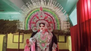 यहां तक कि उनके कपड़े भी एक छउ कलाकार की तरह सजाए गए हैं। इस शिक्षण संस्थान के पूर्व छात्र और प्रबंधन समिति के अध्यक्ष बिलाल खान ने बताया कि यह पूजा पिछले कई वर्षों से लोगों का ध्यान आकर्षित करती आ रही है। पूजा के साथ-साथ पुनर्मिलन उत्सव भी मनाया जाता है। देश के विभिन्न भागों और विदेशों में रहने वाले पूर्व छात्र भी पूजा के दौरान पुरुलिया आते हैं। इस बार, हमारे स्कूल के एक पूर्व छात्र ने यह मूर्ति बनाई है। इसके अलावा मंडप को बाघमुंडी के चरिदा गांव के प्रसिद्ध छऊ मुखौटे से भी सजाया जा रहा है।