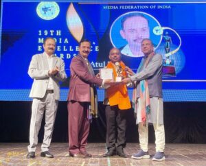 नई दिल्ली। मीडिया फेडरेशन ऑफ इंडिया द्वारा दिल्ली के प्यारेलाल आडिटोरियम में आयोजित 19 वें मीडिया एक्सीलेंस अवार्ड समारोह में डीडी न्यूज के बहुचर्चित एंकर अशोक श्रीवास्तव को बेस्ट मेल एंकर, ज़ी न्यूज़ की ख्यातनाम एंकर शोभना यादव को बेस्ट फीमेल एंकर, माखनलाल चतुर्वेदी विश्वविद्यालय के पूर्व कुलपति प्रोफेसर डॉ के. जी. सुरेश को मीडिया गुरु और वरिष्ठ पत्रकार अतुल तारे को श्रेष्ठ संपादक के विशिष्ट पुरस्कारों से नवाजा गया। इन हस्तियों को भारतीय जनसंचार संस्थान (आईआईएमसी) के पूर्व महानिदेशक प्रो.संजय द्विवेदी और भारत विकास परिषद् के राष्ट्रीय संगठन मंत्री सुरेश जैन ने सम्मानित किया।
