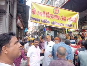 श्री सत्यनारायण भगवान की सवारी में श्री काशी विश्वनाथ सेवा समिति द्वारा ठंडाई और जल का वितरण