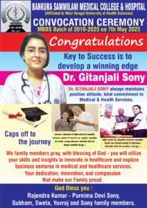 डॉक्टर गीतांजलि सोनी ने कहा कि राष्ट्र एवम् समाज की सेवा करना प्रमुख उद्देश्य है । डॉक्टर के जीवन में मानव सेवा सर्वोपरि है । मेरे परिवार ने अच्छे संस्कार से सदैव मेरा मार्गदर्शन किया है ।