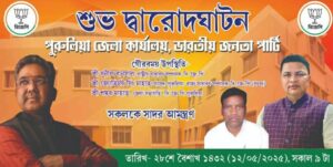 इस अवसर पर सांसद ज्योतिर्मय सिंह महतो ने कहा कि 6 वर्ष पूर्व एक विशेष दिन पर इस कार्यालय का शिलान्यास किया गया था। लेकिन आज बुद्ध पूर्णिमा के दिन हमें अत्यंत गर्व है कि पुरुलिया जिले में नए भवन का उद्घाटन हो रहा है। और इससे भी अधिक गर्व की बात यह है कि अधिकारीगण भीषण गर्मी की परवाह किए बिना कतारों में पहुंचे। हमें उम्मीद है कि यह दौरा और कार्यालय पुरुलिया जिले और राज्य के भाजपा पदाधिकारियों के लिए आगामी चुनावों को सफल बनाने में विशेष लाभकारी होगा।