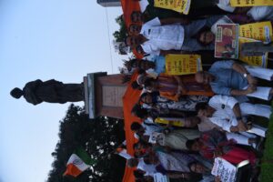 कोलकाता । प:ब प्रदेश कांग्रेस के सभापति शुभांकर सरकार के नेतृत्व मै बिरला तारामंडल के समीप भूतपूर्व प्रधानमंत्री स्वर्गीय इंदिरा गांधी जी के मूर्ति के बैठकर इंदिरा गांधी अमर रहे नारे के साथ कहा “भारत की संस्कृति में कभी सिंदूर के साथ सौदा संभव नही है, लेकिन ट्रंप के बयान से साफ है कि व्यापार को हथियार बनाकर ऑपरेशन सिंदूर को रुकवाया गया। नरेंद्र मोदी पूरे विश्व के सामने झुका हुआ नजर आ रहे है।सैकड़ों कार्यकर्ताओं ने हाथ मै पोस्टर लेकर पाकिस्तान मुर्दाबाद के नारे के साथ पाकिस्तान के प्रधानमंत्री ओर सेना चीफ का पुतला दहन किया गया।इस मौके पर प्रदीप भट्टाचार्य,अम्बा प्रसाद,अमिताभ चक्रवर्ती,भोला यादव,प्रदीप प्रसाद,सुभाष सिंह,पंकज सोनकर,तपन अग्रवाल,मानस सरकार,सोनू ठाकुर,अजीत सिंह,भोला दस,बबलू,अमीर अली व अन्य सैकड़ों कार्यकर्तागण उपस्थित थे।