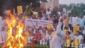 ट्रंप के बयान से साफ है कि व्यापार को हथियार बनाकर ऑपरेशन सिंदूर रुकवाया , पश्चिम बंगाल प्रदेश कांग्रेस कमेटी के द्वारा पाकिस्तान प्रधानमंत्री और सेना प्रमुख का पुतला दहन