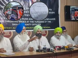 रानीगंज/ ड्यूटी पर तैनात सिख पुलिस अधिकारी को अपमानित कर दस्तार पर चप्पल फेंकने का आरोप पूरे पश्चिम बंगाल के प्रमुख सिख पदाधिकारीयों के साथ कोलकाता प्रेस क्लब में बैठक का आयोजन किया गया। सैकड़ो की संख्या में सिख पदाधिकारी उपस्थित हुए एवं भाजपा के प्रदेश अध्यक्ष सुकांत मजूमदार के विरुद्ध एफआईआर कालीघाट थाना में दर्ज की गई। सेंट्रल गुरुद्वारा प्रबंधक कमेटी के अध्यक्ष सरदार तजेंद्र सिंह बल ने कहा कि बताया कि 12 जून भाजपा की ओर से कोलकाता में विरोध प्रदर्शन किया जा रहा था। इसी दौरान पुलिस ने भाजपा प्रदेश अध्यक्ष सुकांत मजूमदार को हिरासत में लेकर पुलिस वैन में बिठा रही थी, इसी बीच सुकांत मजूमदार ने वहां पर मौजूद एक सिख पुलिस अधिकारी को अपमानित कर उन्होंने अपनी चप्पल दस्तार (पगड़ी) पर फेंक दी। जो किसी भी सिख की पहचान होती है। सिख समाज के मर्यादा को गहरी चोट लगी है इसके लिए हम लोग घटना की तीव्र निंदा करते हैं। कोलकाता बड़ा बाजार गुरुद्वारा के मुख्य जत्थेदार सरदार गुरप्रीत सिंह ने कहा कि इसके पहले भी भाजपा के कार्यकर्ता, नेताओं ने सिख को खालिस्तानी कहकर अपमानित किया था। कहा कि क्या पश्चिम बंगाल में सिखों को अपमानित होना पड़ेगा। उन्होंने कहा कि जब तक भाजपा नेता पर कोई कानूनी कार्रवाई नहीं होती तब तक आंदोलन जारी रहेगा। इस अवसर पर गुरचरण सिंह सरल, इंद्रजीत सिंह, सतनाम सिंह अहलूवालिया, परवलिया गुरुद्वारा के मुख्य जत्थेदार सरदार मलकीत सिंह सहित पूरे पश्चिम बंगाल के कई गुरुद्वारों के प्रतिनिधि उपस्थित थे।