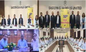 संकतोड़िया, 8 अगस्त, 2025 ! कोल इंडिया लिमिटेड की एक अनुषंगी कंपनी और देश की अग्रणी कोयला उत्पादक कंपनी, ईस्टर्न कोलफील्ड्स लिमिटेड (ईसीएल) ने 8 अगस्त 2025 को सैंक्टोरिया स्थित अपने मुख्यालय में अपनी 50वीं वार्षिक आम बैठक (एजीएम) आयोजित की। यह बैठक हाइब्रिड मोड में आयोजित की गई, जिसमें व्यक्तिगत और वर्चुअल दोनों माध्यमों से भागीदारी की अनुमति दी गई, जिससे व्यापक जुड़ाव सुनिश्चित हुआ।