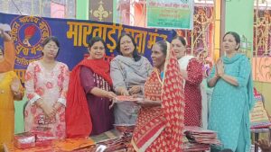 मारवाड़ी युवा मंच देवी शक्ति की चेयरपर्सन स्वीटी लोहिया, कोचेयरपर्सन दीप्ति सराफ ,पास्ट प्रेसिडेंट आयुष झुनझुनवाला, सचिव अमित बजाज ,प्रिया बजाज ,पंखुड़ी बजाज, यशिका शर्मा,
