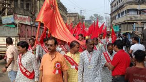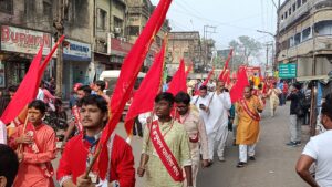 रानीगंज। कार्तिक पूर्णिमा के पावन अवसर पर हनुमान चालीसा संघ के द्वारा रानीगंज हनुमान मंदिर में हनुमान महोत्सव धूमधाम से मनाई गई। इस अवसर पर सीताराम मंदिर से नगर में भव्य शोभायात्रा निकाली गई, जिसमें सभी वर्ग के सनातन धर्म के अनुयायियों ने उत्साहपूर्वक भाग लिया और नगर परिक्रमा की। इस दौरान मंदिर के संचालक पवन पारीक ने बताया कि रानीगंज धार्मिक आस्था का प्रमुख केंद्र है और यहाँ का बड़ा बाजार हनुमान मंदिर लगभग डेढ़ सौ वर्षों से श्रद्धालुओं का तीर्थ स्थल बना हुआ है। यहां आने वाले भक्तों की मनोकामनाएं पूर्ण होती हैं।