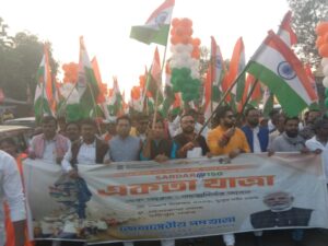 जामुड़िया। सरदार बल्लभ भाई पटेल के 150 वे जन्मजयंती का पालन करते हुए जामुड़िया विधानसभा क्षेत्र के खास केंदा इलाका से “एकता यात्रा” का आयोजन किया गया।”एक भारत आत्मनिर्भर भारत” के नारे के साथ “एकता यात्रा” निकली गई जिसमें सैकड़ों लोग हाथों में तिरंगा झंडा लिए जुलूस में शामिल हुए।”एकता यात्रा ” जुलूस खास केंदा काली मंदिर के पास से शुरू हुआ जो हरिपुर बाजार होते हुए बहुला मोड़ के पास पहुंच सम्पन्न हो गया।इस दौरान यात्रा में शामिल अरिजीत राय ने कहा कि लौह पुरुष सरदार बल्लभ भाई पटेल के 150 वे जन्मजयंती के उपलक्ष्य में “एकता यात्रा” का आयोजन किया जा रहा है।उन्होंने कहा कि भारत के यष्यशवी प्रधानमंत्री नरेंद्र मोदी के आवाहन पर पूरे देश में “एकता यात्रा” का आयोजन किया जा रहा है।उन्होंने कहा कि सरदार बल्लभ भाई पटेल द्वारा जिस अखंड भारत का नेव रखा गया था उसे पूरा करते के उद्देश्य से प्रधानमंत्री नरेंद्र मोदी द्वारा पूरे देश में “एकता यात्रा” का आयोजन किया जा रहा है।वही इस दौरान अपूर्व हाजरा,केशव पोद्दार,संतोष सिंह,शंकर चौधरी,डॉक्टर प्रमोद पाठक,संजय सिंह,पिनाकी राय,दीप बनर्जी,अनिरुद्ध चक्रवर्ती,राहुल बाउरी,विक्की चौरसिया,रवींद्र यादव,कल्याण दुबे,रंजीत गांधी आदि प्रमुख रूप से मौजूद थे।