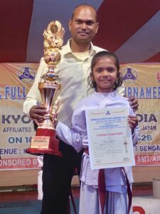 दुर्गापुर। दुर्गापुर पानागढ़ समेत पश्चिम बर्धमान जिले के लिए एक बहुत बड़ा गौरवपूर्ण क्षण है, सात साल की छोटी उम्र में स्तुति दत्ता ने राष्ट्रीय स्तर पर बड़ी उपलब्धि हासिल की है। उल्लेखनीय है कि दुर्गापुर के पानागढ़ की निवासी सात वर्षीय स्तुति दत्ता ने नेशनल फुल कॉन्टैक्ट कराटे टूर्नामेंट – 2026 में चैंपियन का खिताब जीता है। इतनी कम आयु में इतना बड़ा खिताब हासिल करना, स्तुति की काबिलियत को दर्शाता है। यह जीत उनकी कड़ी मेहनत, समर्पण और उत्कृष्ट प्रतिभा को भी दर्शाती है। इस शानदार उपलब्धि के लिए उन्हें और उनके परिवार व प्रशिक्षकों को हार्दिक बधाई। उन्होंने राष्ट्रीय स्तर पर अपने क्षेत्र का नाम रोशन किया है।